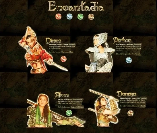 In the show, Encantadia is a vast enchanted realm comprising of four divided kingdoms where different mythical entities thrive. These four kingdoms bear the four precious stones that holds the land's balance. The kingdom of Adamya, Sapiro, Lireo, and Hathoria. The tranquility and future of Encantadia rests on the four gemstones of water, earth, air and fire; each being carefully kept by the bearers from each kingdom.