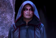 When he was released from prison by Avria, he appears wearing a black jumpsuit as his hair now has gray highlights and gains a long gray beard.