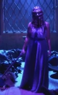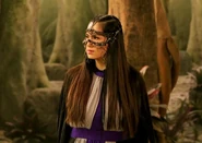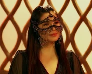After her rebirth, pledged allegiance with Avria and being assisted by Amarro, she no longer wears a half-mask as her curse while being unmasked is lifted. She wears a black high-neck sleeveless gown with reddish brown outlines. Her hair is now in a ponytail.