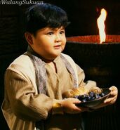 Paopao made a debut when Enuo explained to Danaya about The Lost People who have been kidnapped by the bandits from Encantadia. He was playing hide and seek with his friends. When he finally stopped counting, he saw the Bandits and screaming loudly, thinking they were ghosts. He was then placed in a large brown bag. When he arrived at Encantadia, he was being fed by black rice given by the Bandits. When he saw the black rice, he found them delicious and quickly ate them.