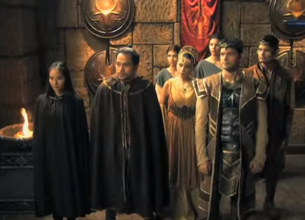 The Sapiryan leadership prior to the Hathor invasion. From left to right, Alira Naswen, Asval, Queen Asnara, King Armeo, and Prince Raquim.